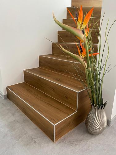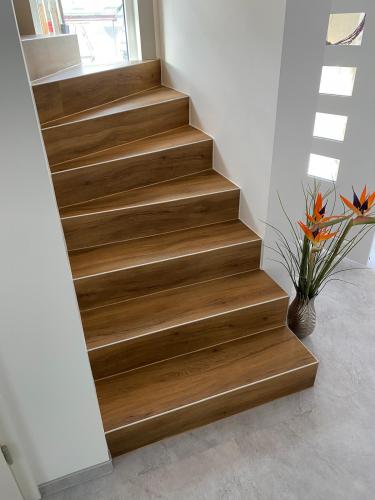 Bei diesem Projekt wurde eine massive Betontreppe mit Vinylboden im Massivholz- Look gestaltet.